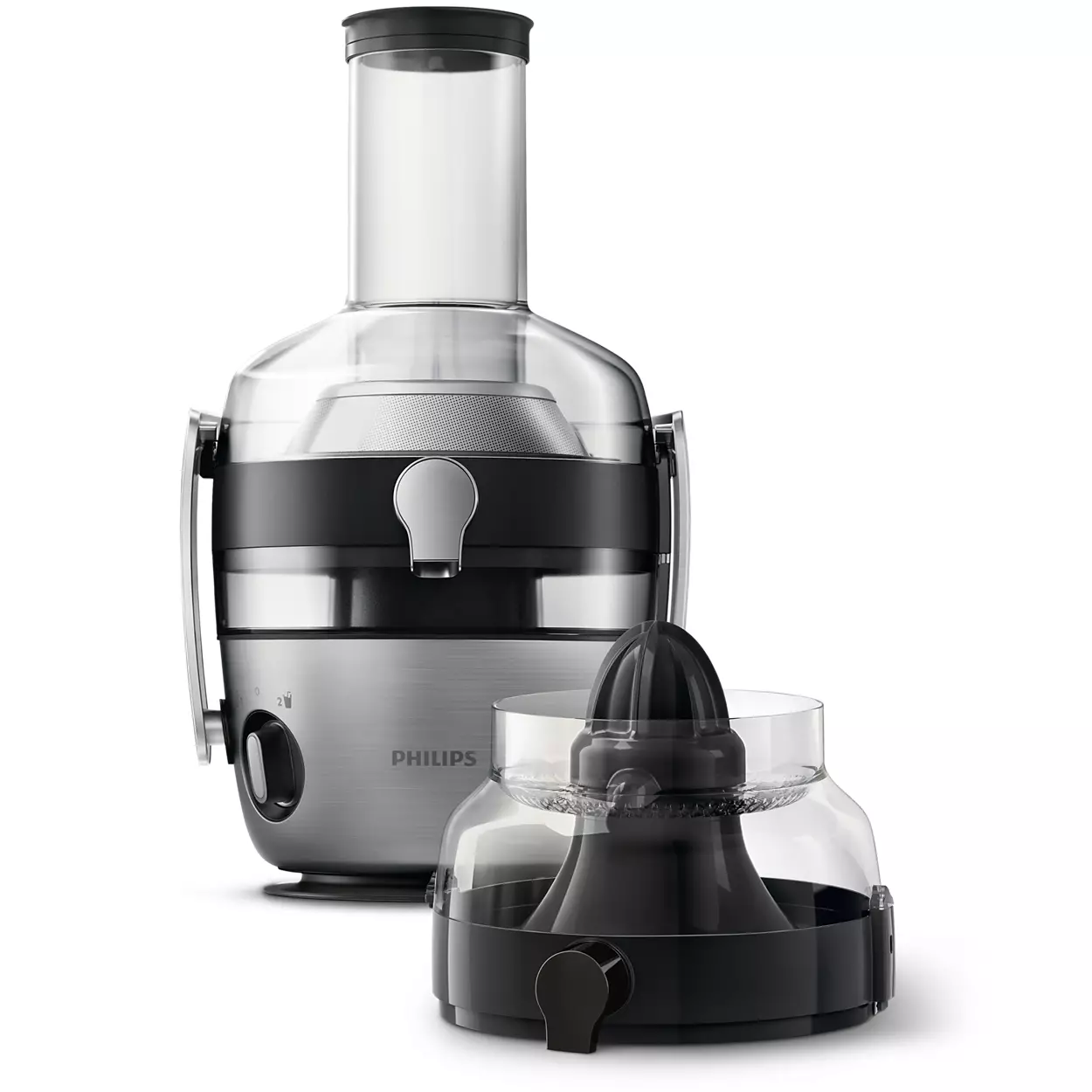 FiberBoost technology enables you to choose the texture of juice you prefer, selecting with the switch of a button from a refreshing clear juice to a more creamy juice with up to 50% more fiber. The unique combination of smartly controlled constant speeds with unique sieve design allows more or less fiber in your juice, so that everyone can enjoy their favorite.